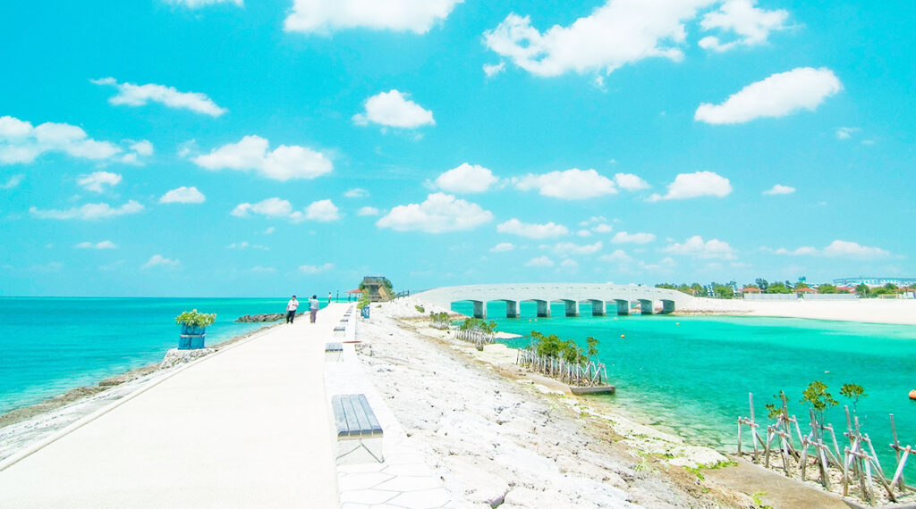 美々ビーチいとまんは、糸満市を代表する人工ビーチで、白い砂浜と透明度の高い海が魅力です。